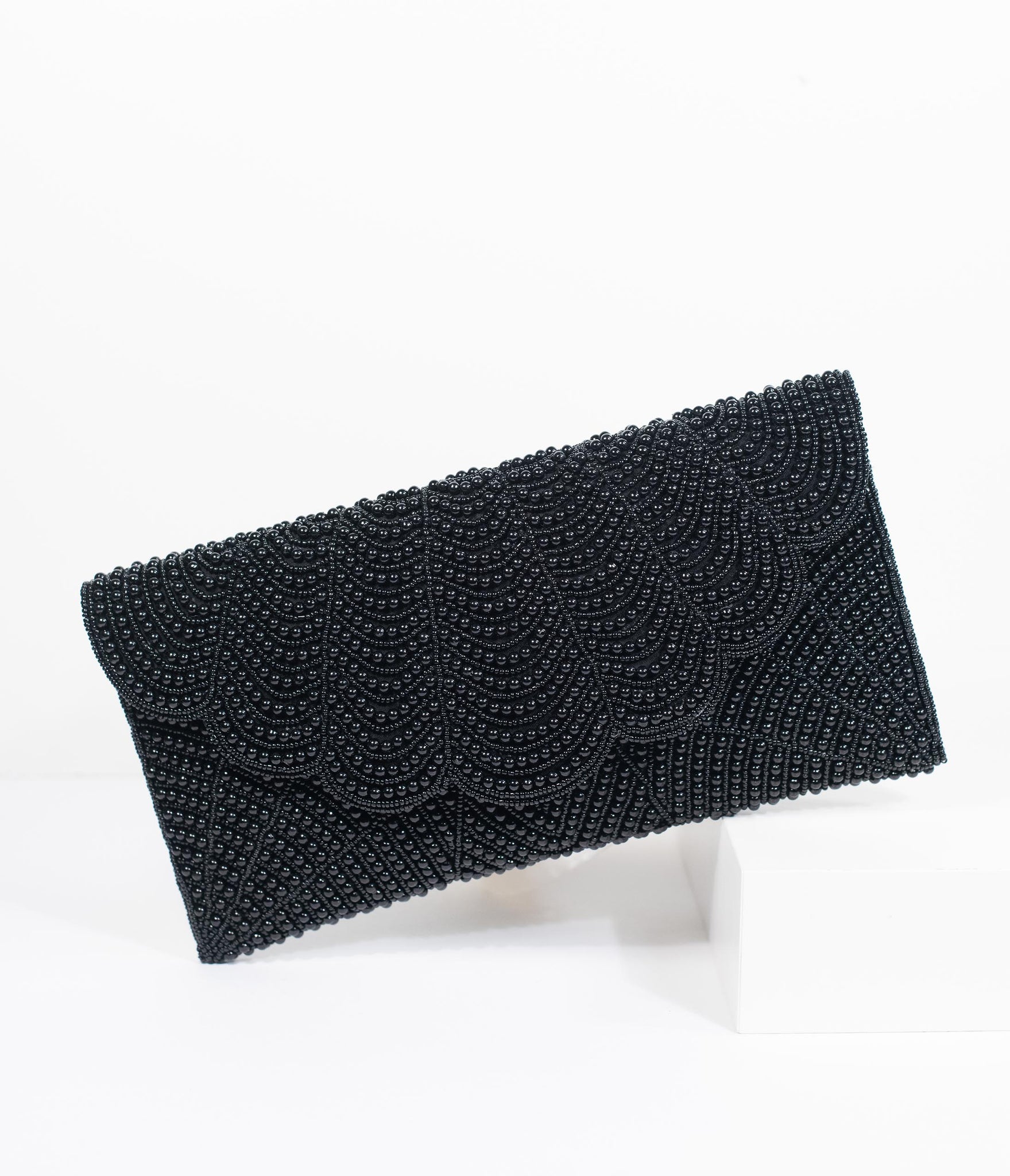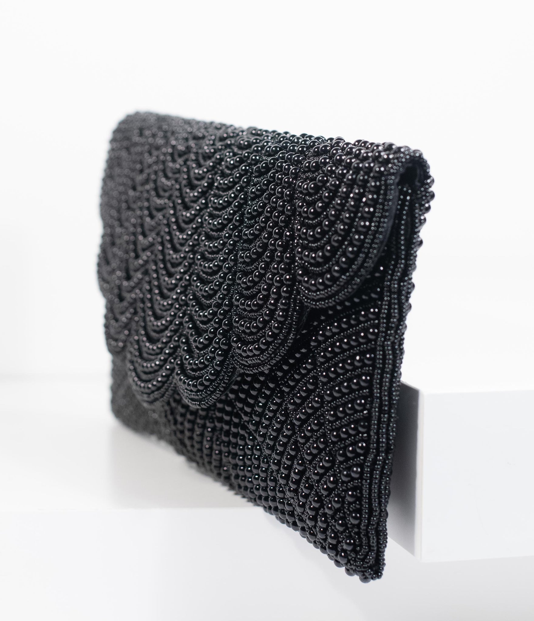 • Load image into Gallery viewer, 1920s Style Black Beaded Envelope Clutch