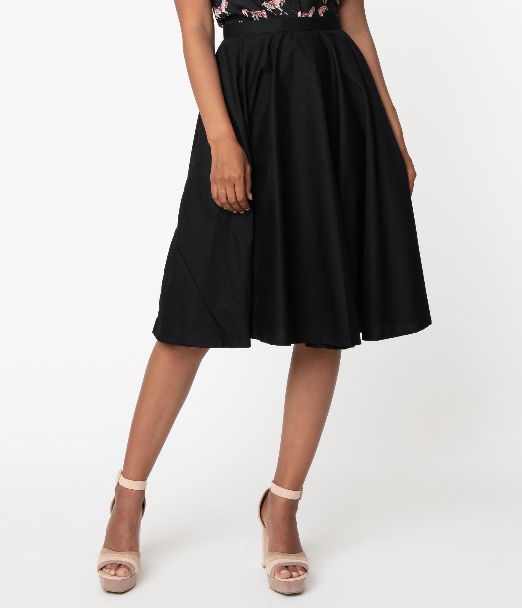1950s Style Black High Waist Swing Skirt