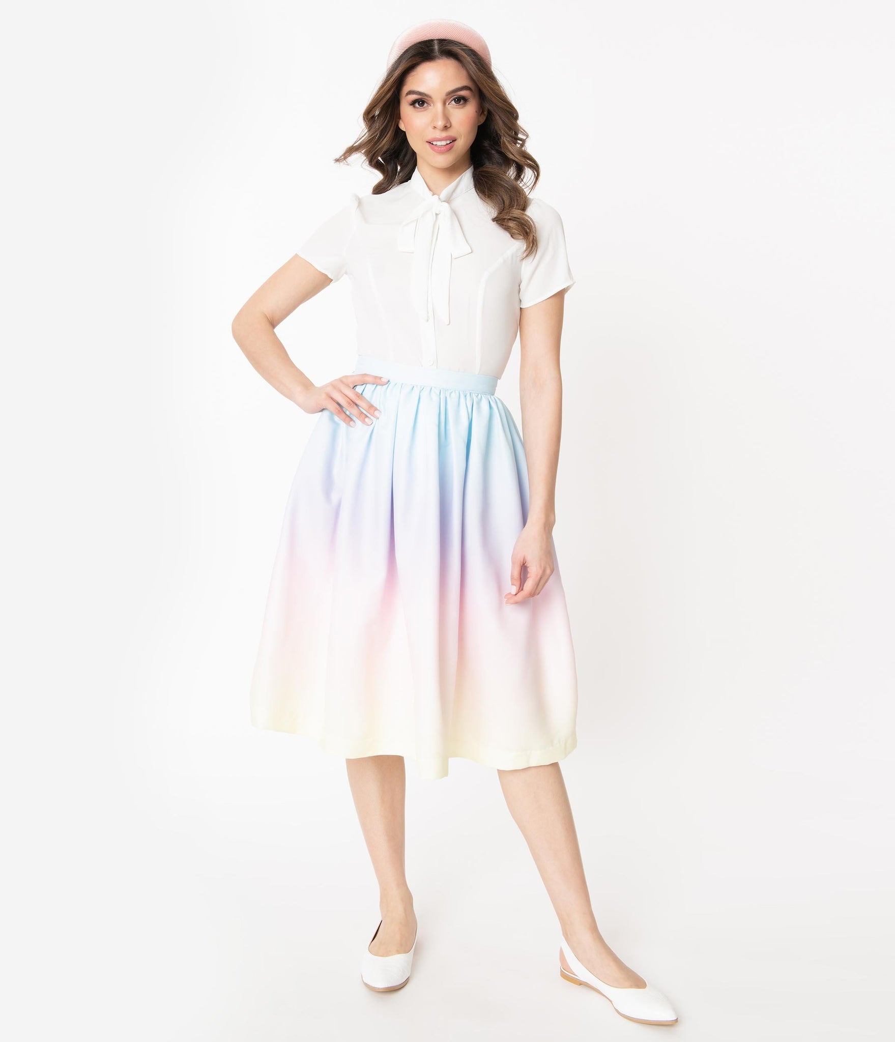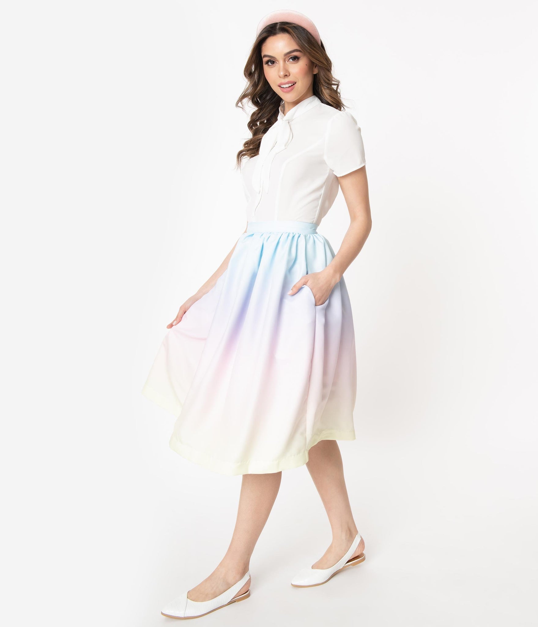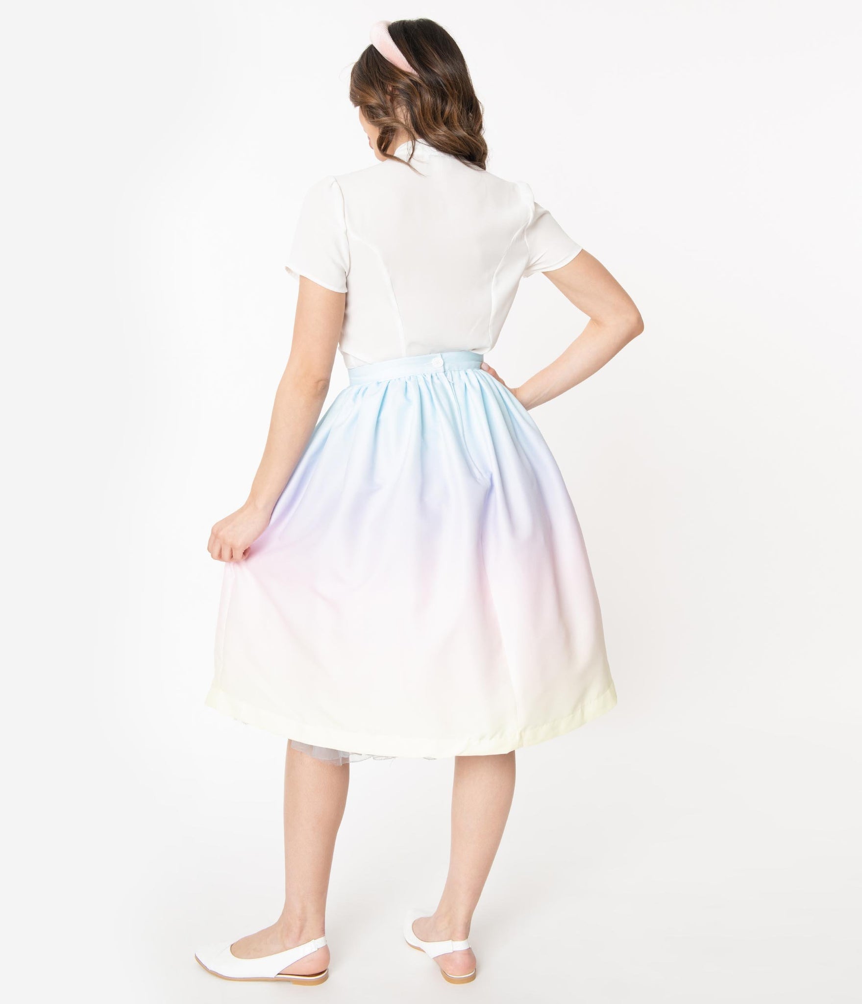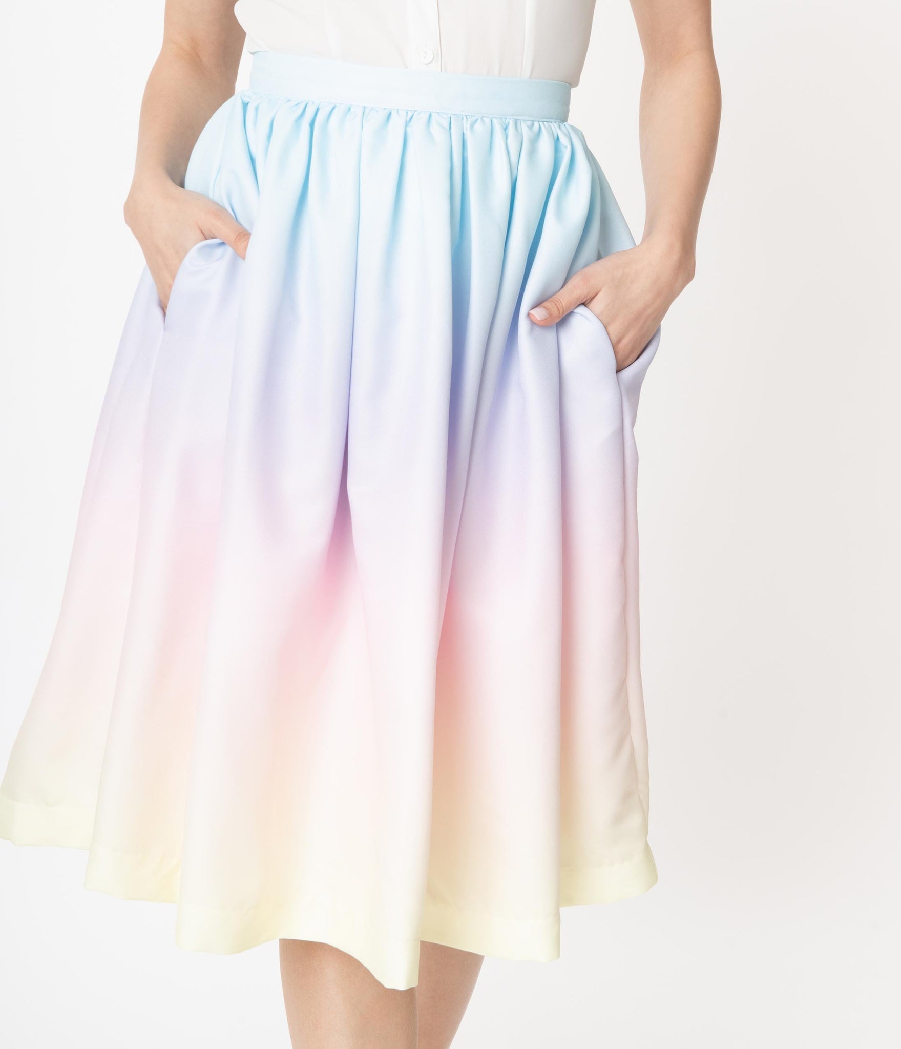 1950s Style Pastel Rainbow Ombre Swing Skirt