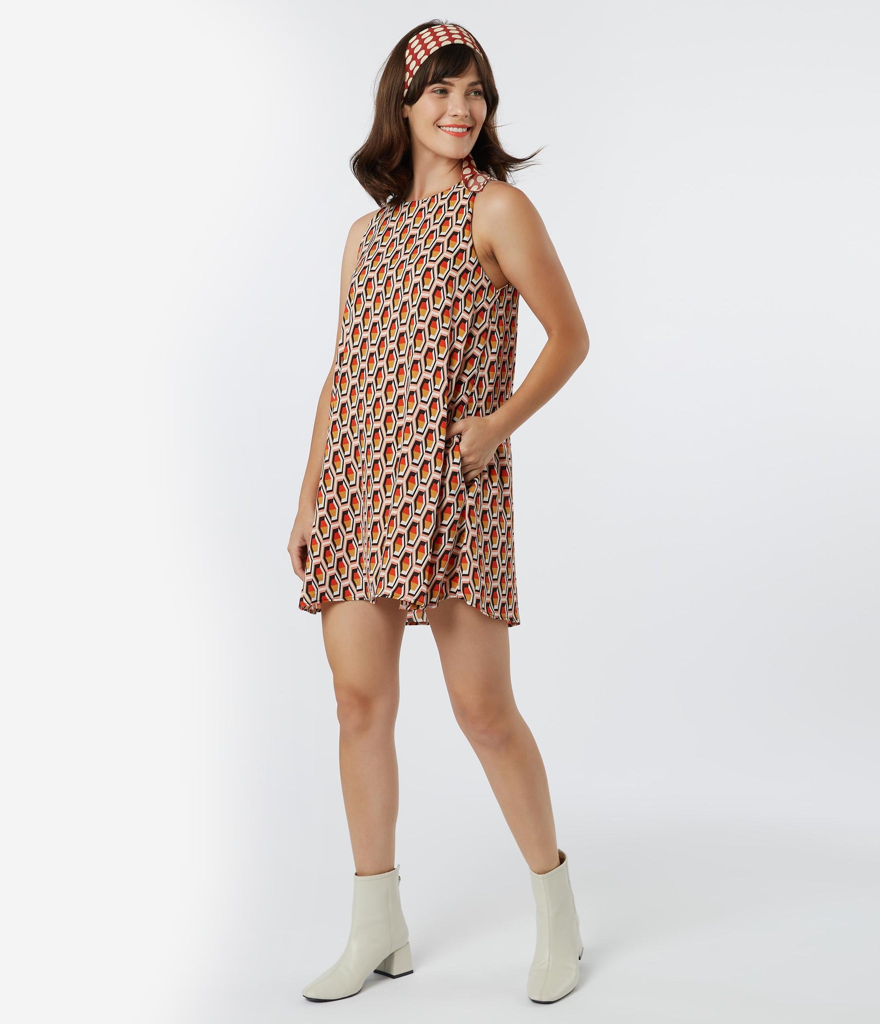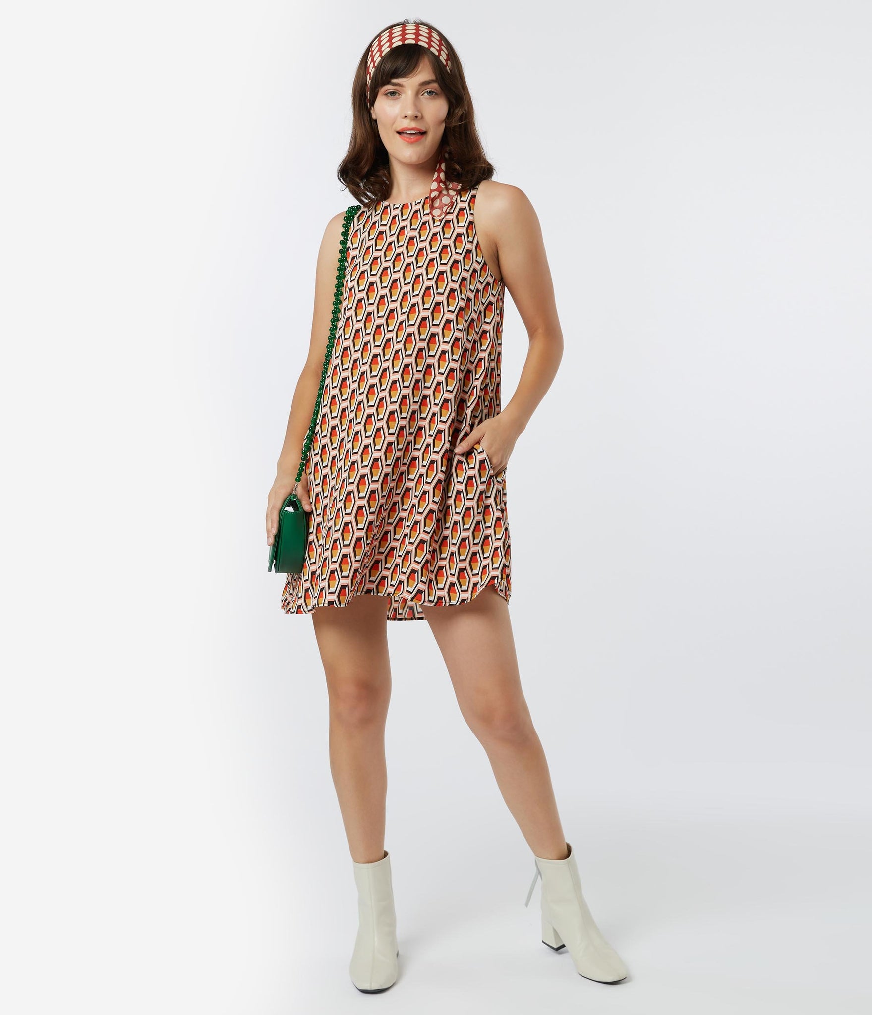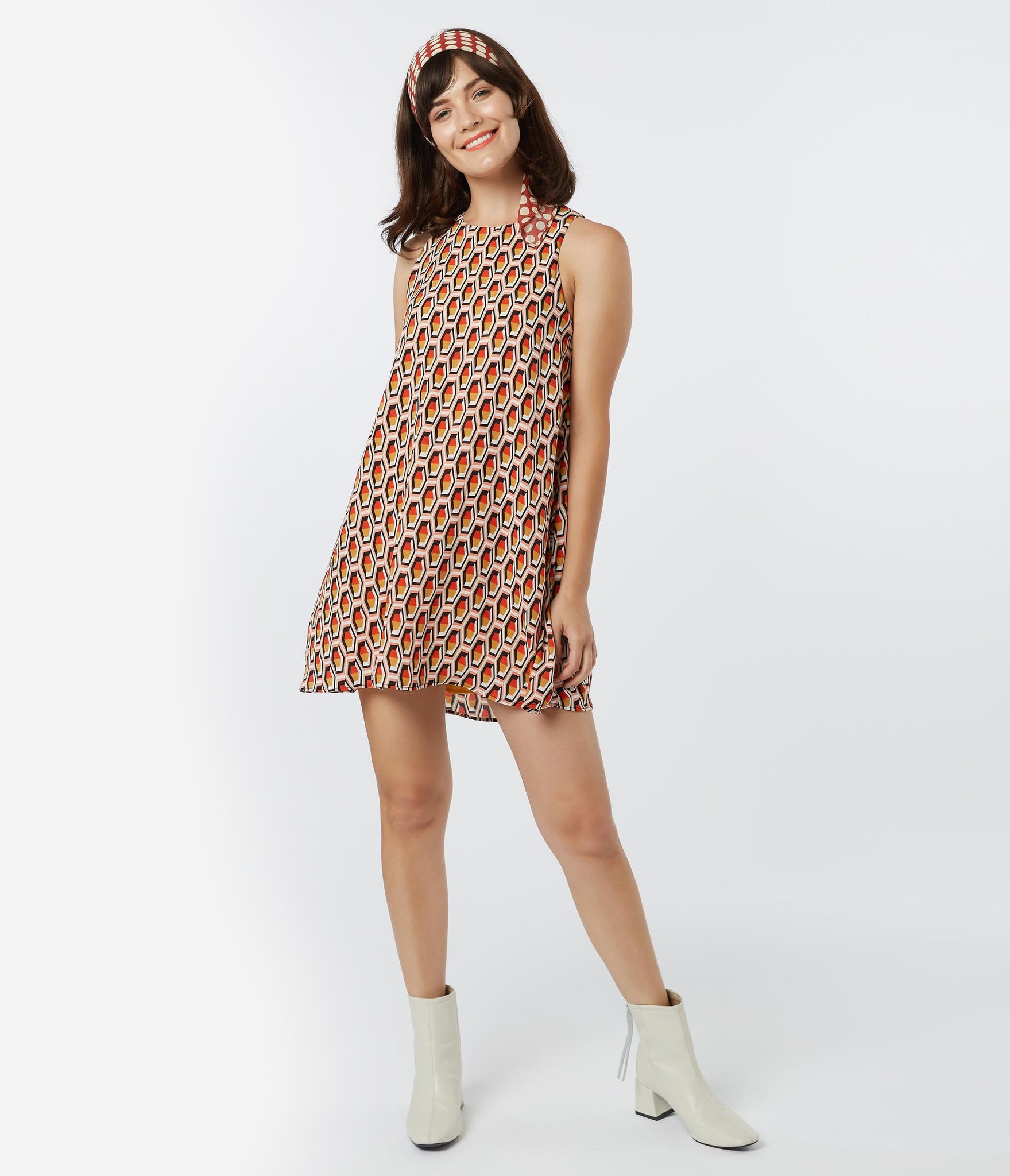 1960s Style Honeycomb Print Shift Dress