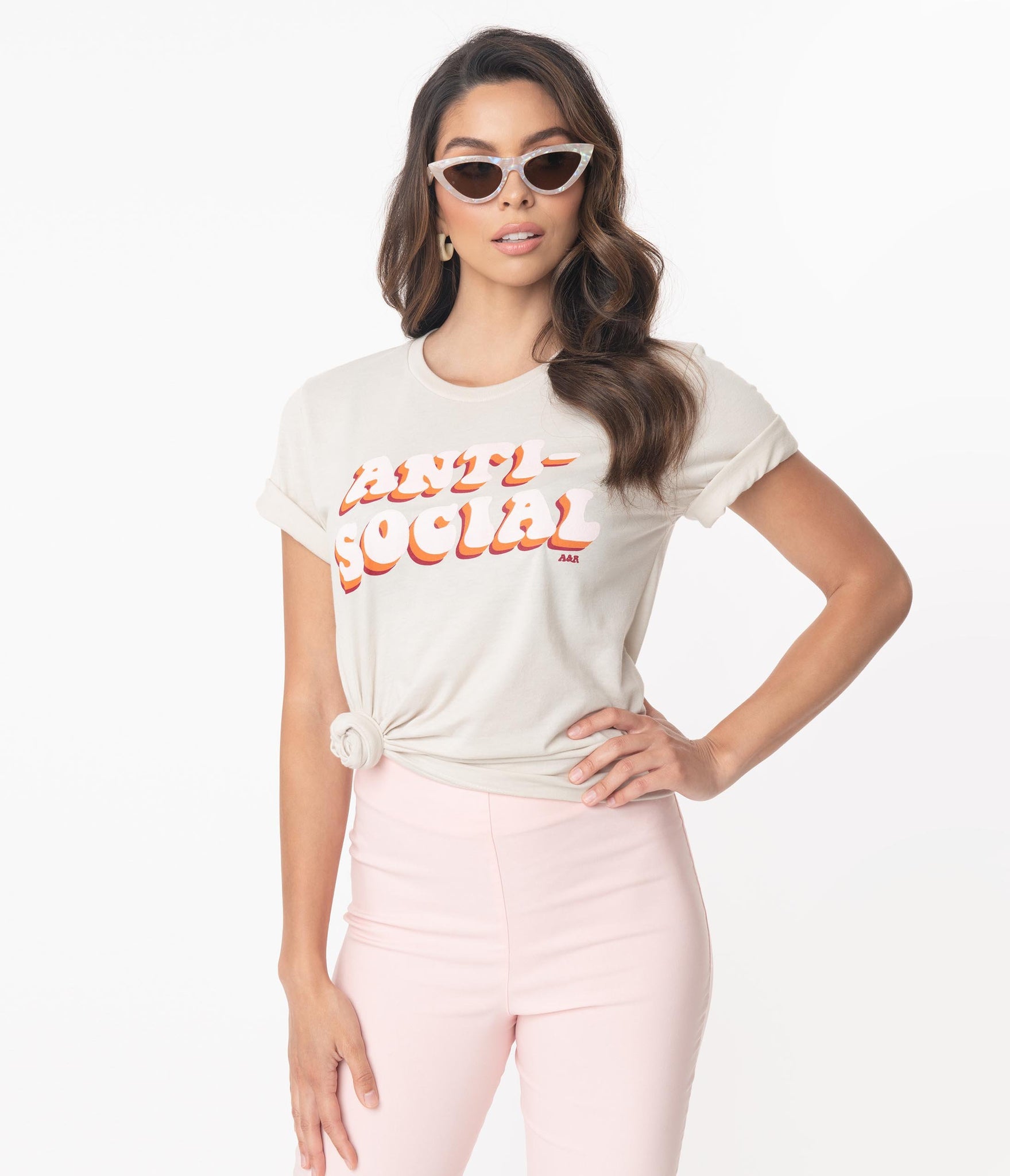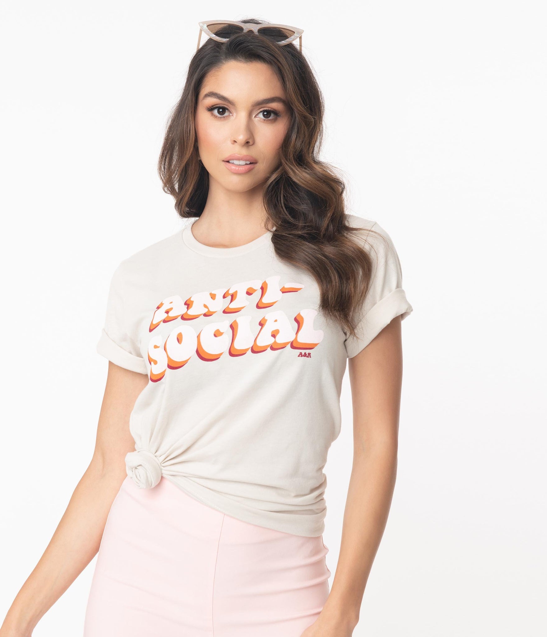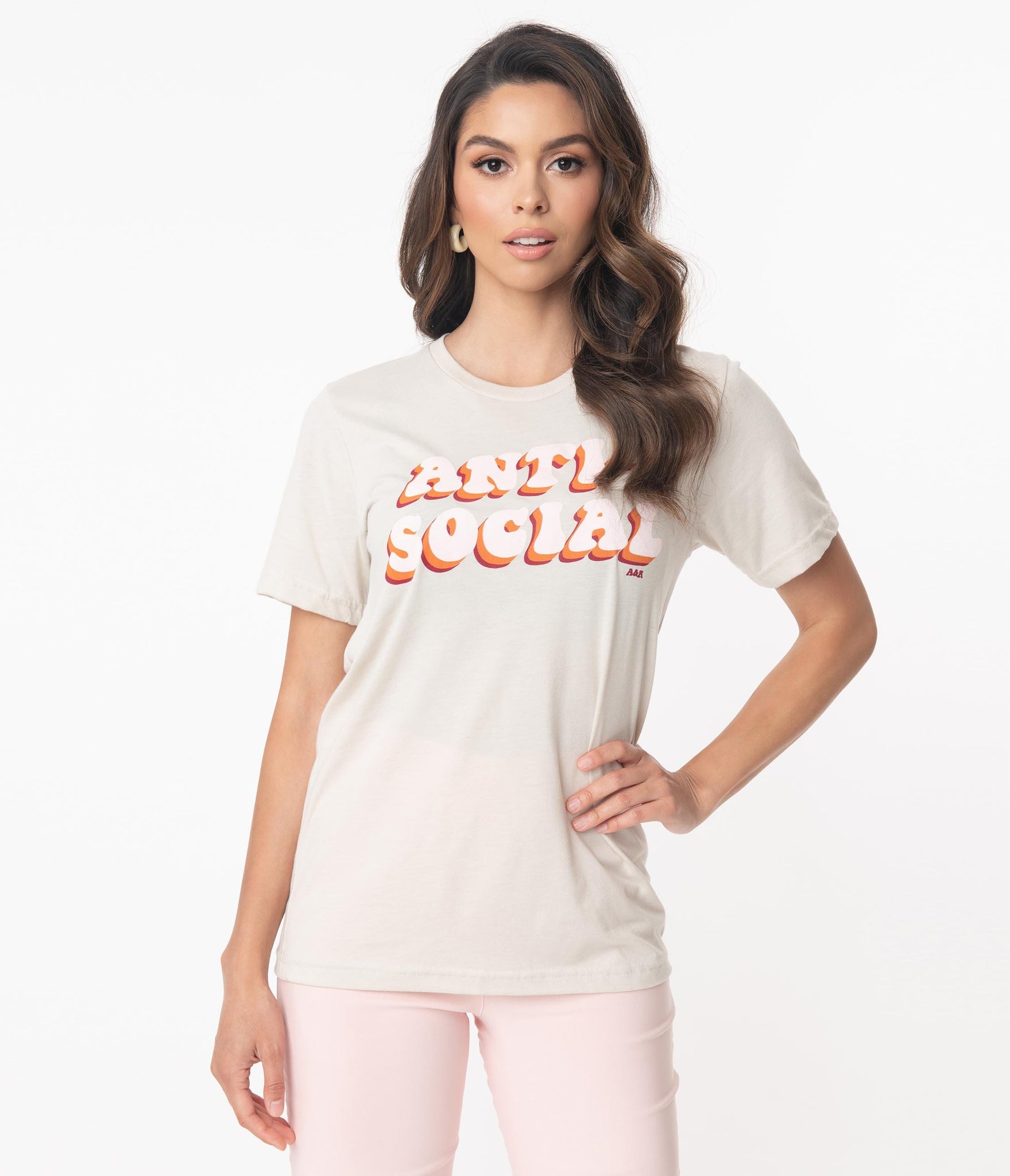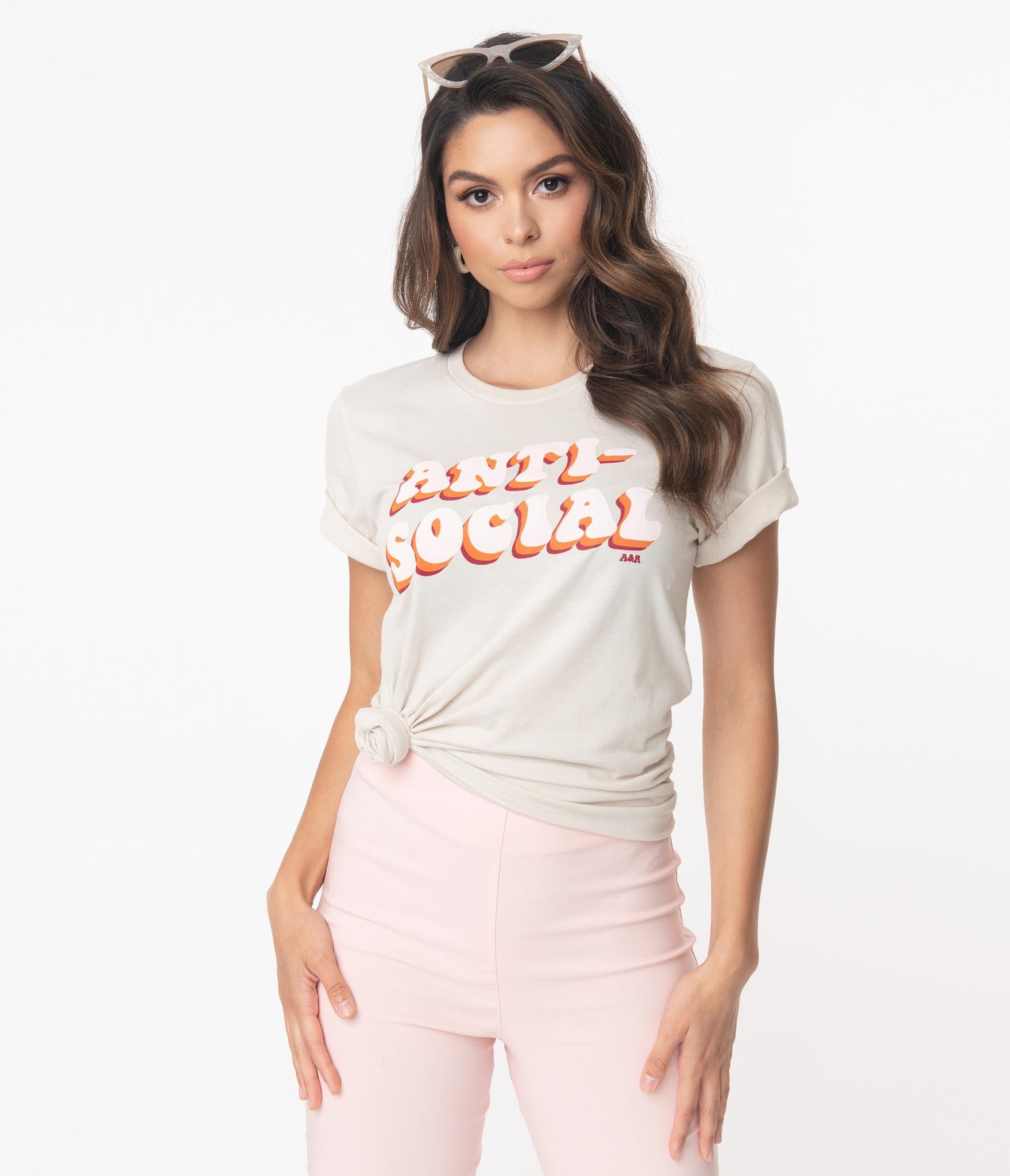 We’re not feeling the whole “people” vibe, dolls! Cast in a soft and lightweight cotton blend, this heather tan unisex tee boasts a groovy screen print graphic that says ‘Anti-Social’ on the front. Complete with crew neckline and short sleeves!