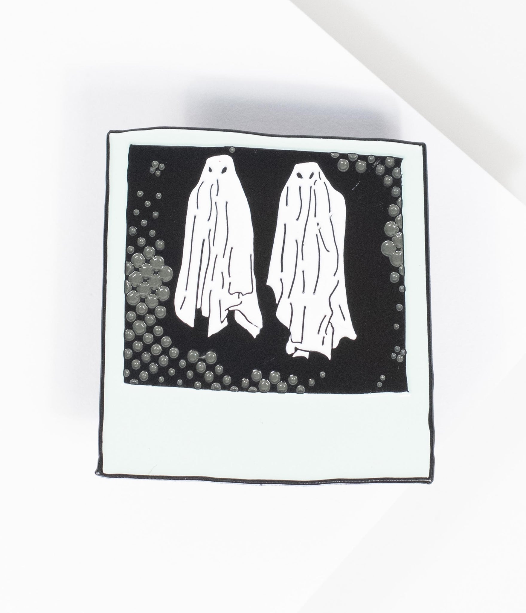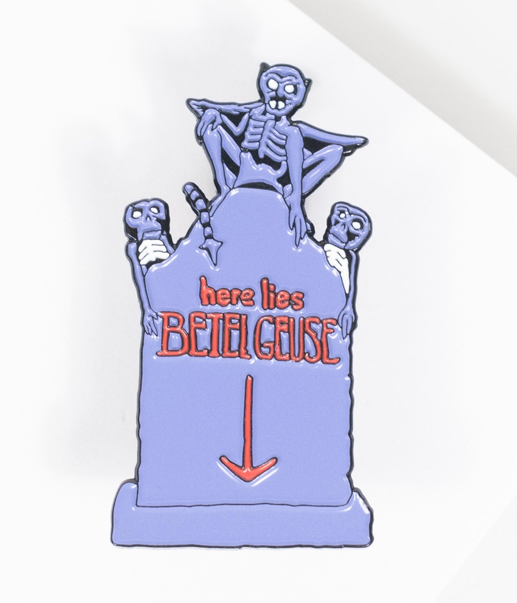 Iconic moments that thrill us! A spooky pin set from Unique Vintage in a fabulous collaboration with Beetlejuice, these hair-raising accessories showcase your love for the classic film. This enamel four set comes secured with butterfly clasps.