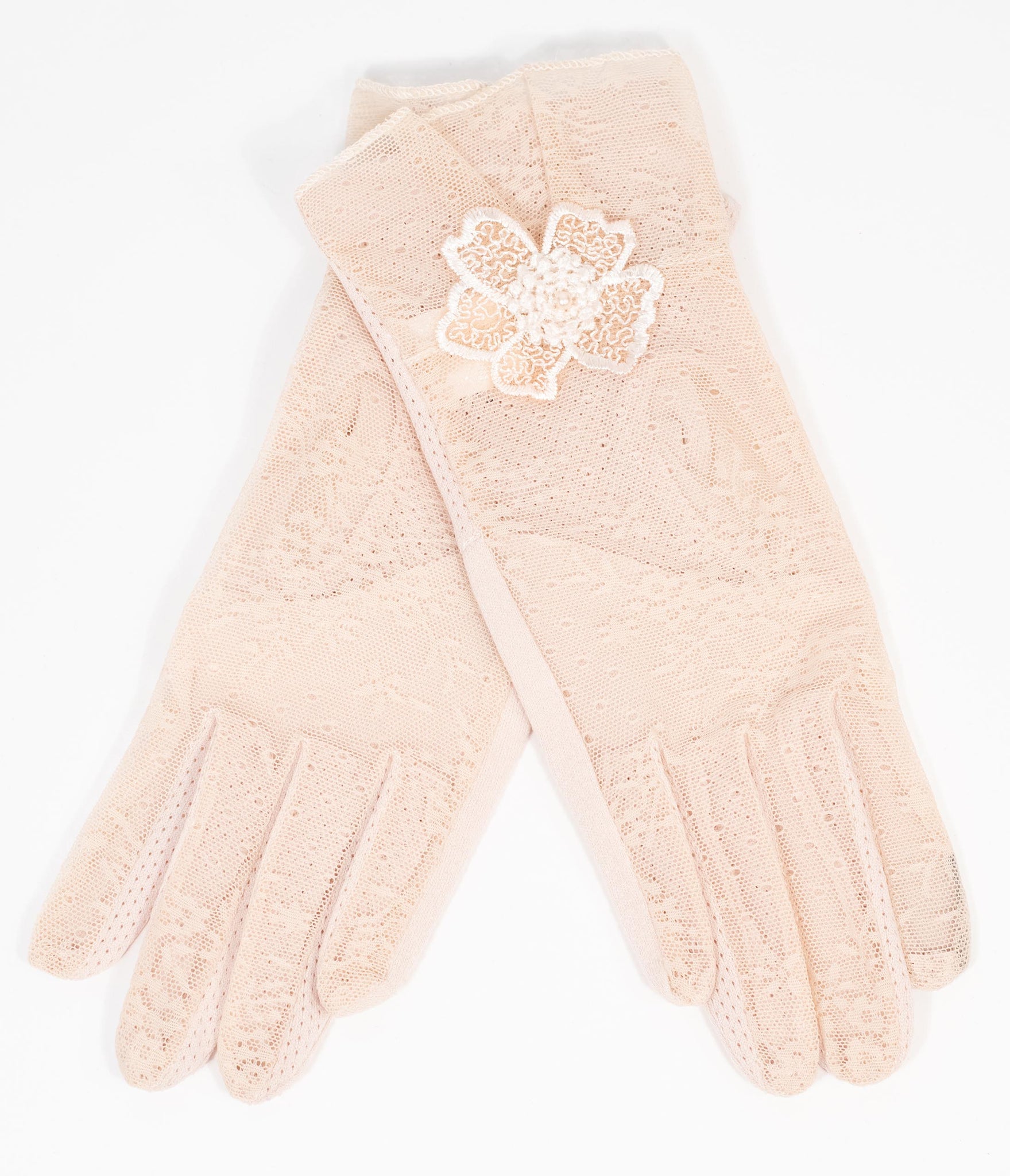 Beige Lace & Floral Accent Gloves