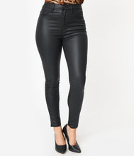 Time to be an ultra babe! These daring skinny jeans are crafted in marvelous stretch fabric that hugs your feminine assets for a jaw-dropping fit. Cast in a coated black fabric, these jeans have a little extra shine for your look. The banded high waist is nipped in with a front zipper and button while functional front and back pockets keep your essentials close at hand!