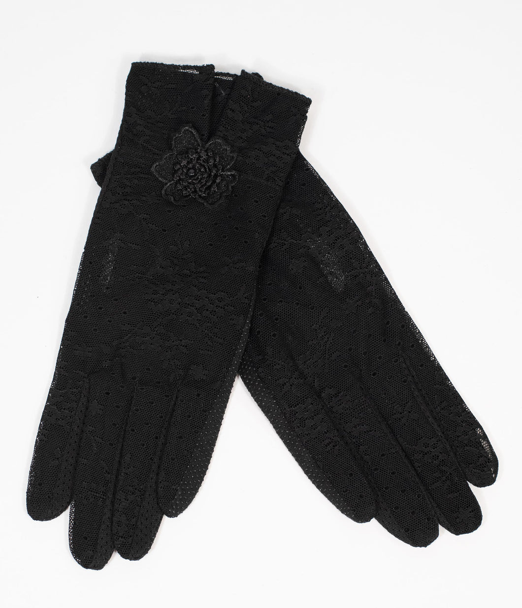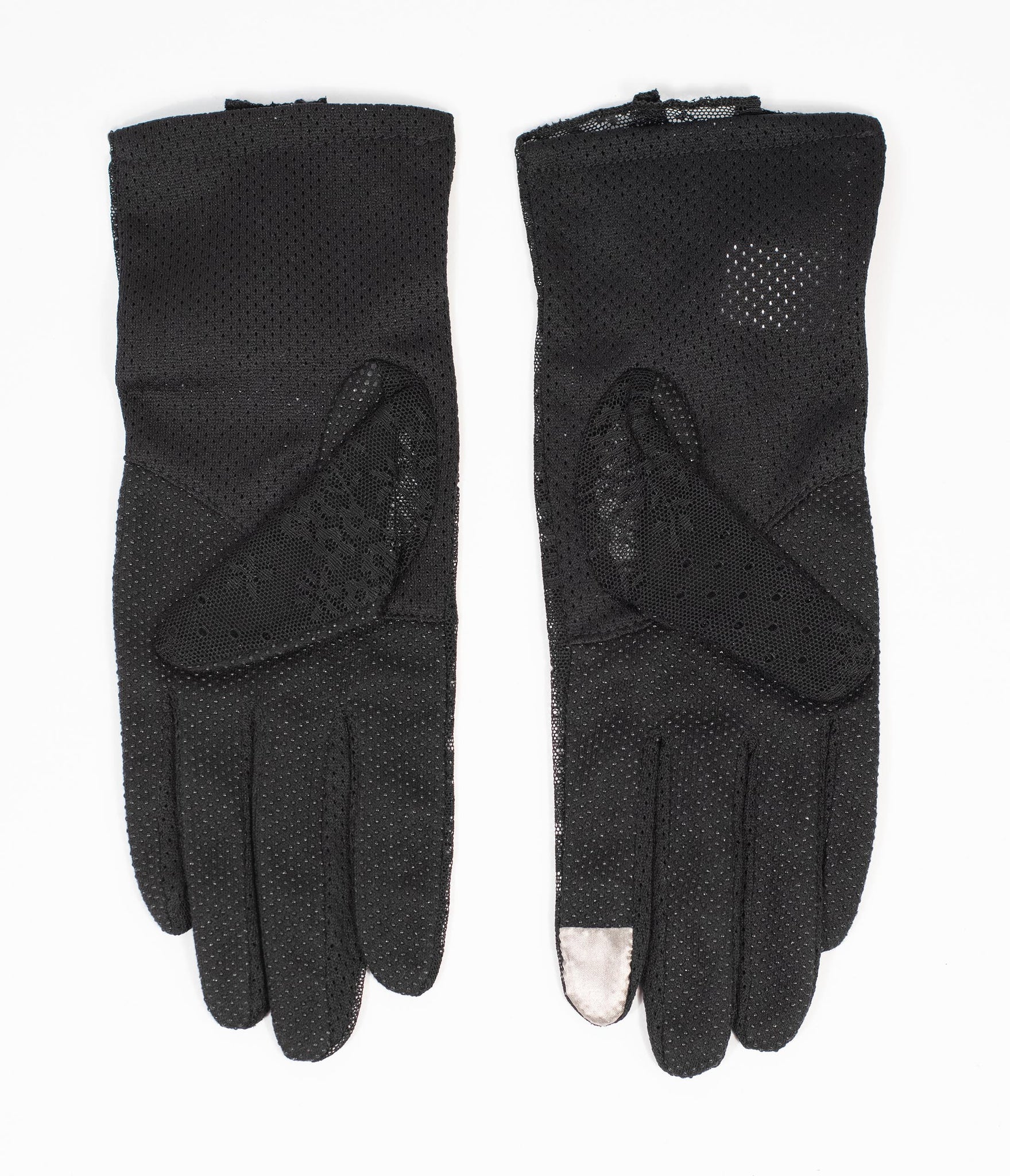 A beautiful addition! These lovely vintage pair are crafted in a fabulous sheer black lace, embellished with a sweet floral on the wrist. The perforated palms features silicone stippling for easy grip and a touchscreen pointer finger for modern mobility! Available while supplies last.