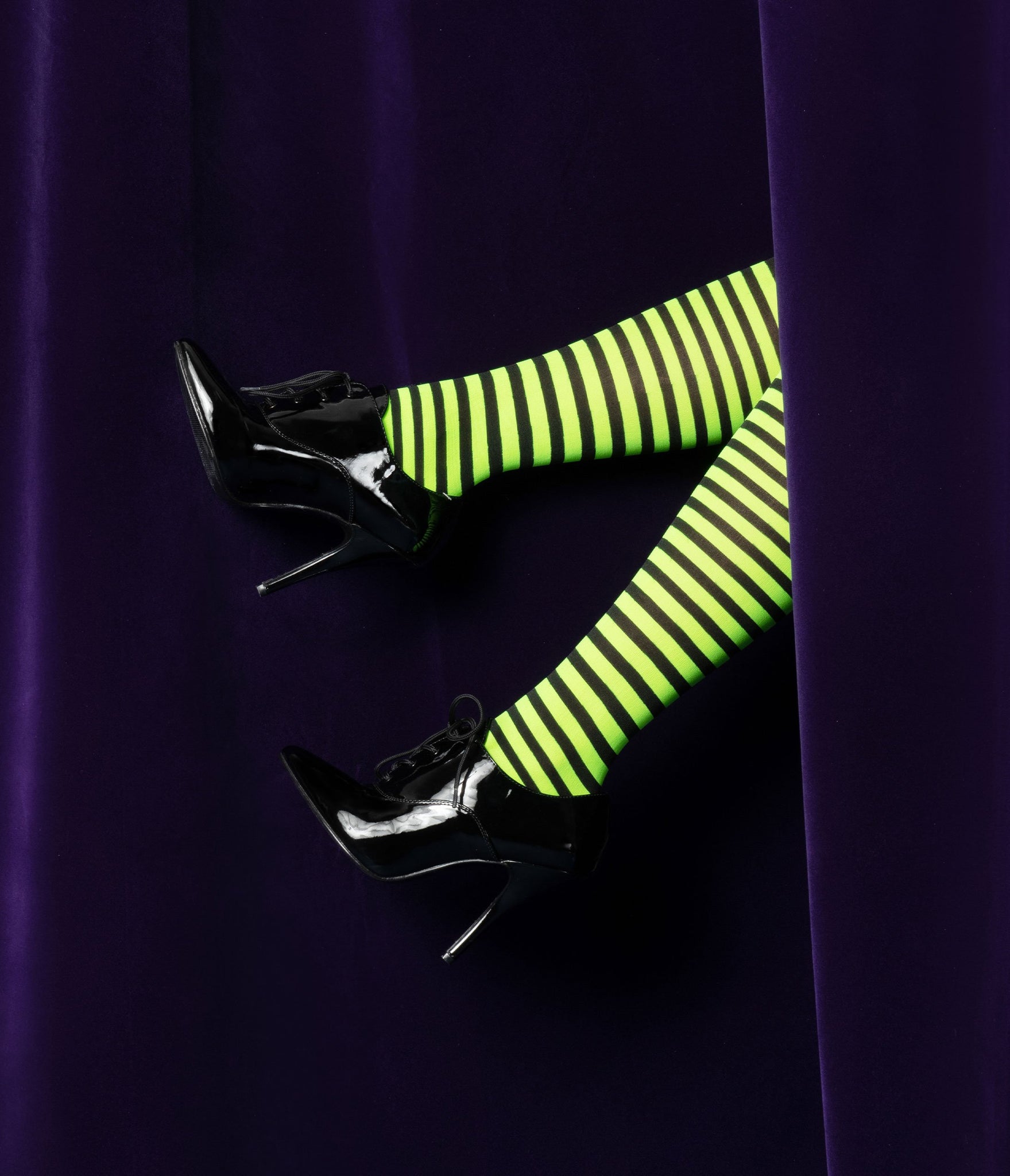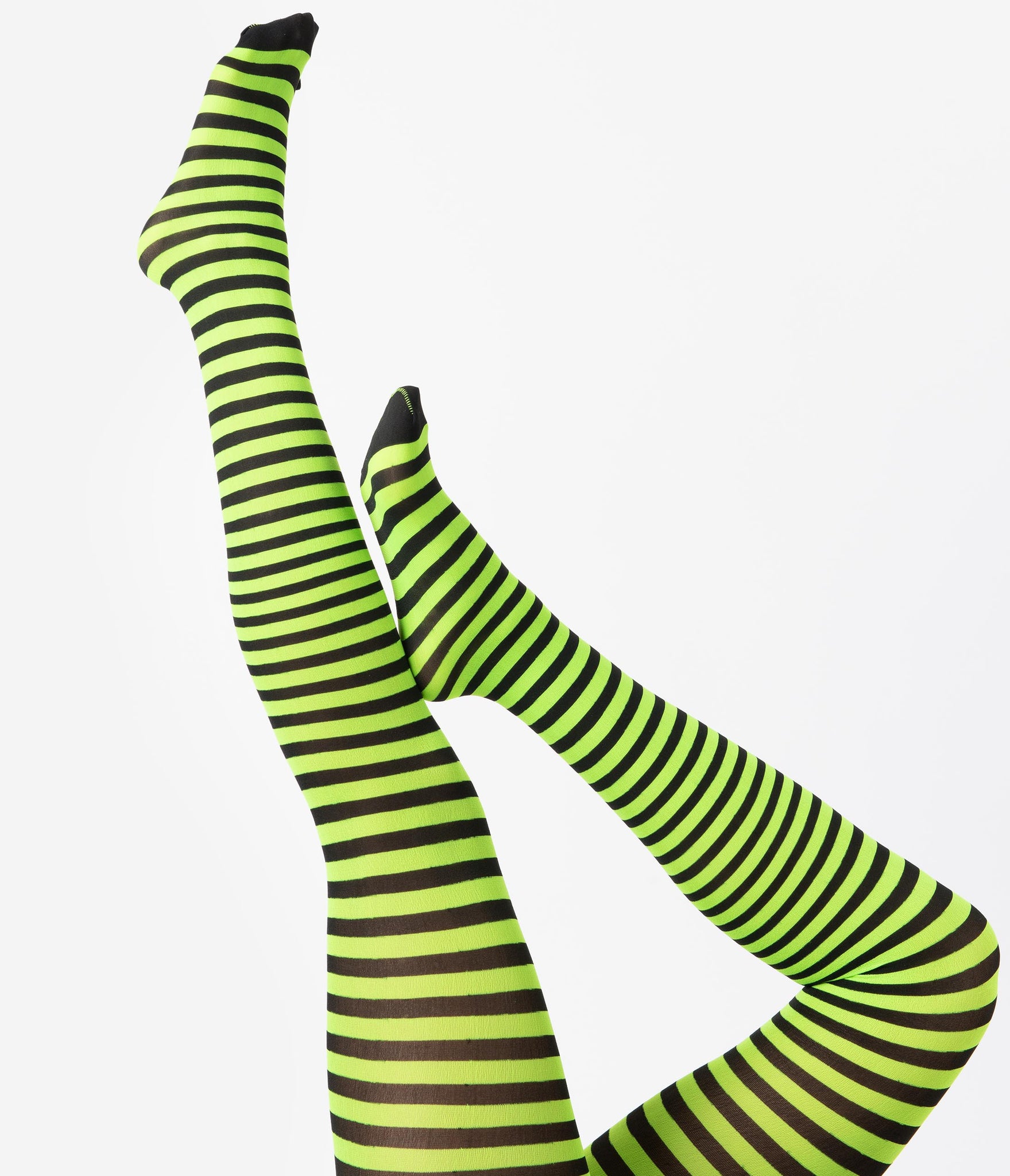 Bring bewitching to a new level, darling! These alluring tights are crafted in durable nylon and boast black and neon green stripes throughout. Fuel your passion for bold silhouettes!