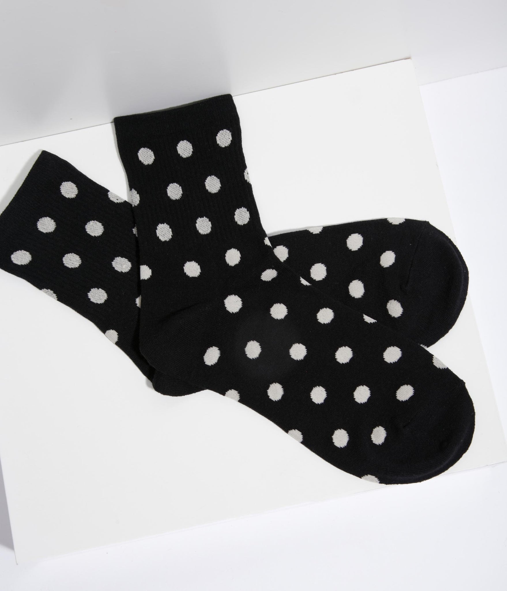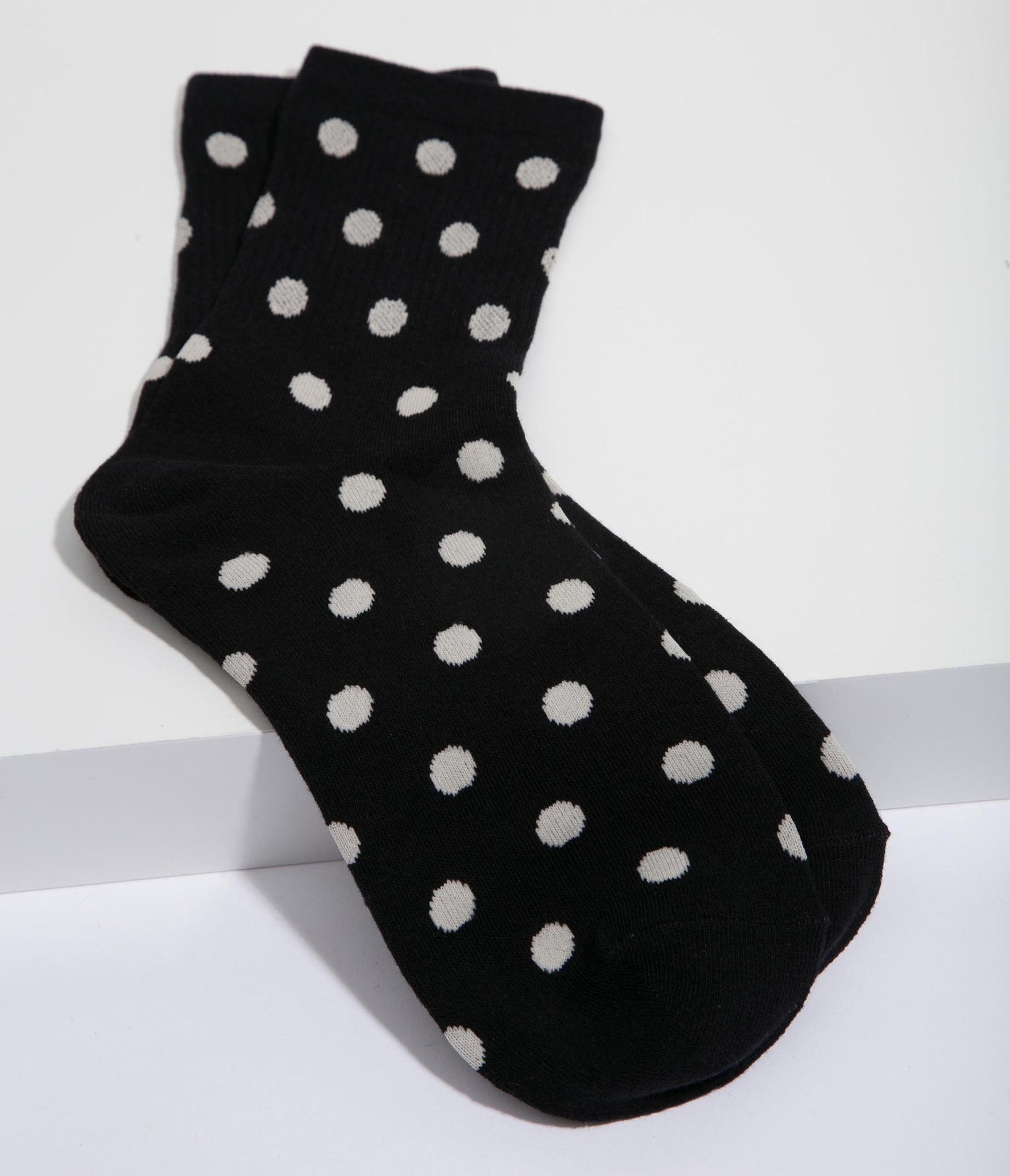 Sweet from head to dot! These black cotton knit ankle socks are adorable and soft with white polka dots throughout!